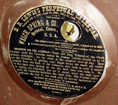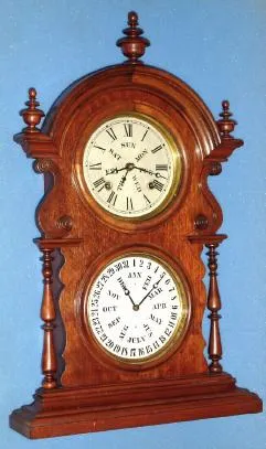 C.1878, Welch, Spring and Co., Bristol, Conn, WAGNER, B.W., MANTEL, in walnut, 8-day double dial calendar, with patent B. B. Lewis perpetual calendar mechanism.