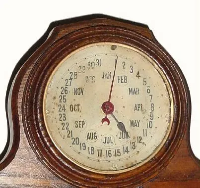 C.1874, Ithaca Calendar Clock Co., "HOME", model, 8-day time and strike, double dial perpetual calendar, mfd especially for R.J. and J.H. Cook.