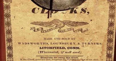 C.1840, Wadsworths, Lounsbury and Turners, Litchfield, Conn., 30-hour time and bell strike pillar and scroll shelf clock.