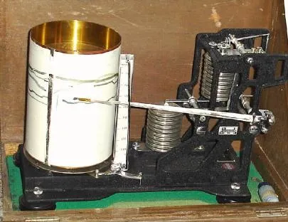 Condition: overall excellent appearance, complete. Has a well jeweled lever movement in the left side to drive the recording drum, and it is wound by ...