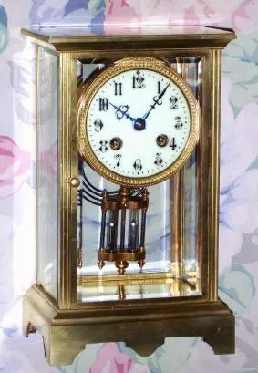 C.1900, French, Samuel Marti, 4-Glass, crystal regulator, in a nice rectangular brass case, 8-day, gong strike, rack movement.