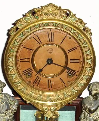 C.1880, Ansonia Clock Co., "Crystal Palace No. 1 Extra", 8-day time and bell strike mantel clock, less dome.