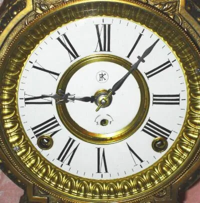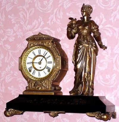 C.1890, F. Kroeber, New York, CALIFORNIA, Cast metal figural clock, 8-day time and gong strike.