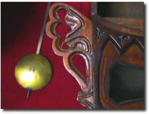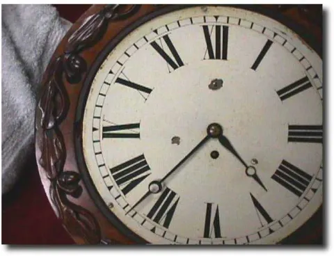 English Fusee Drop Dial Wall Clock Heavily carved mahogany drop dial wall clock with Fusee movement. 12 " white dial with Roman hour markers that shows only minor flaking near the mounting posts. This nicely carved Victorian clock is in great shape. The anchor escapement movement has not been cleaned recently but it still runs. Running duration 8 Days