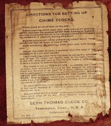 C.1915, Seth Thomas CHIME CLOCK No. 1-SPECIAL, chiming Westminster tune on 4 cupped bells, in mahogany shade Adamantine case.