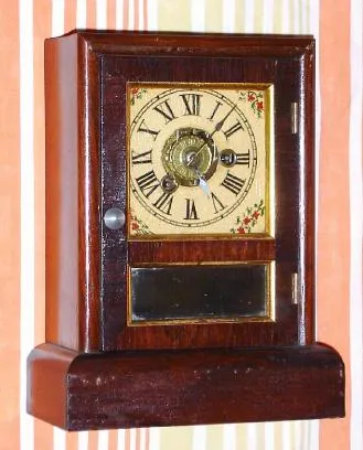 C.1865, Seth Thomas Clock Co., "Cottage E", 30-hour time/alarm rosewood cottage timepiece.