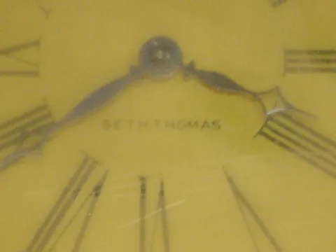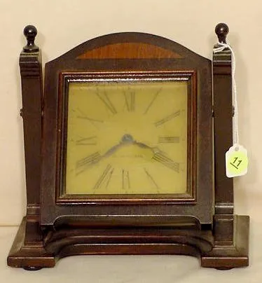 Seth Thomas swivel mahogany desk clock: original surfaces.