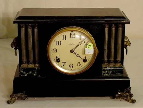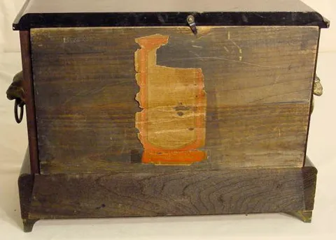 strikes hour & half hour; original finish; remains of rear label. (Minor finish wear & loss; surface deposits; some breaks to back door bottom. Runnin...