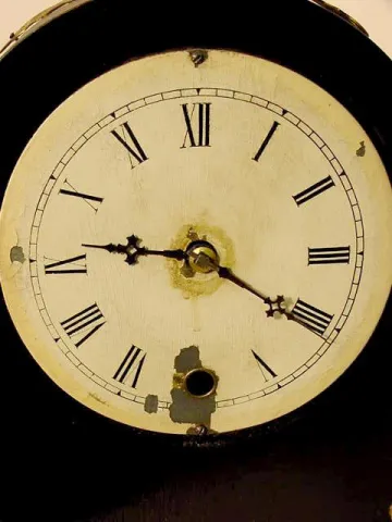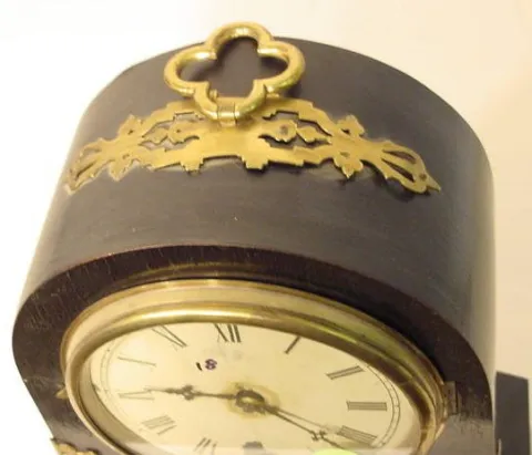 time only; brass accents over original ebonized case. (Crazing & minor losses to painted dial; minor back case split.) Running at the time of listing...