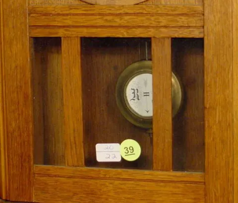 spring driven; gong strike. (Case stripped & lightly finished.) Running at the time of listing, not guaranteed to continue. 21 1/2" T ...