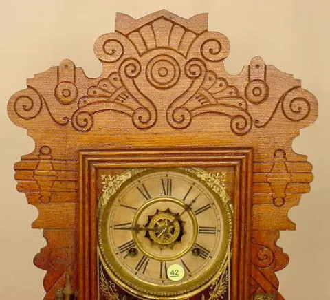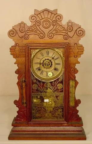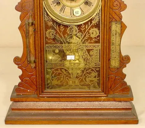 Waterbury parlor clock with alarm, barometer & thermometer: