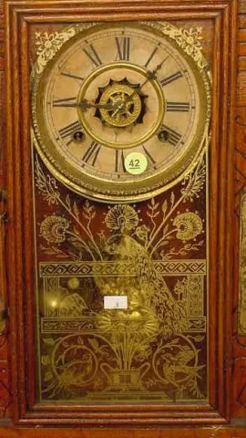 appears mostly original; possibly original glass; partial label on the back. (Thermometer is broken; barometer is not working.) Running at the time of...