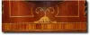A small sized English mahogany and heavily inlayed bracket clock with columns,the numbered and signed French 8-day movement chiming the hours and half hours on a gong by "Mougin", the sturdy inlayed all mahogany case with ached top and free standing columns.102 x 8" x 5"