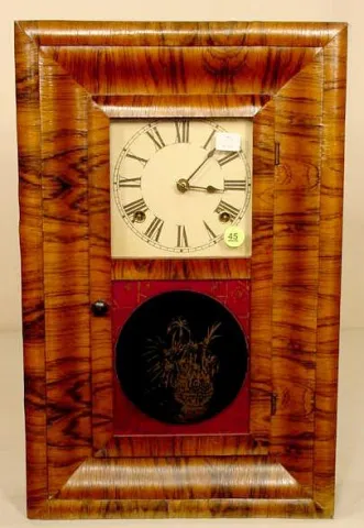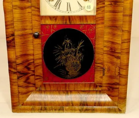rosewood veneer; possibly original lower glass. (Dial & pendulum replaced; minor losses & discoloration; top glass loose.) Running at the time of list...
