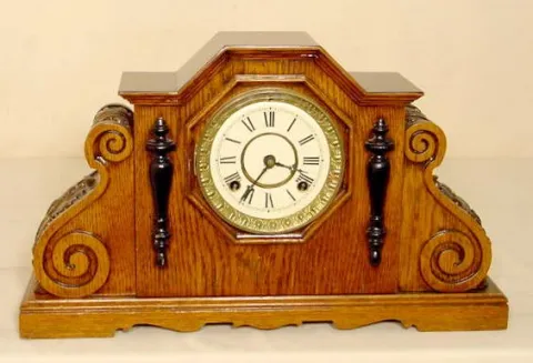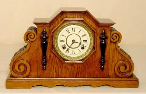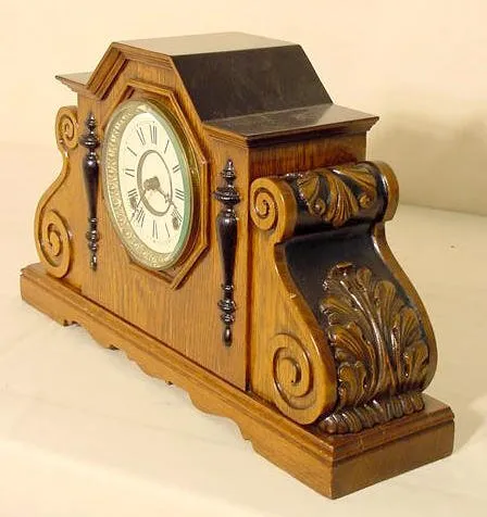 nicely carved and oak toned case. (Possibly a marriage; minor case splits & wear.) Running at the time of listing, not guaranteed to continue. 11 1/2...