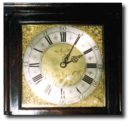 SAMUEL ASHTON, TIDESWELL. 30 Hour movement striking on a bell. Square brass dial with silvered chapter ring and date aperture by Samuel Ashton, Tideswell, Derbyshire, England. Plain oak case with caddy top to hood. Long slender trunk with long door typical of very early long case design. The movement cleaned and restoredand in full working order. Case restoration includes some work carried out by previous owner. Skirting to bottom of case has been replaced. Samuel Ashton is listed as working in Tideswell from 1723 to 1730. Height 120 inches. Additional keywords: longcase, tallcase, grandfather