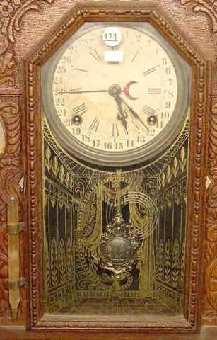 Ingraham Gila oak calendar shelf clock.