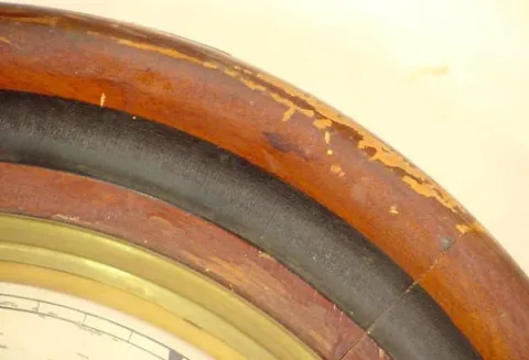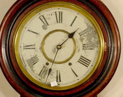 original finish mahogany veneer & mixed woods case; original dial with losses; wear & losses to case finish; pendulum hanger broken.) Not running. 32...