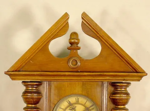 walnut veneer & pine original finish case. Dial discolored; gong strike needs adjusting; lower finials replaced.) Running at the time of listing, not...
