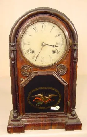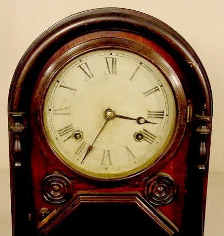 original finish rosewood veneer case; nice looking possibly original glass; old dial. (Case is discolored with minor losses; scrapes & wear; dial tou...