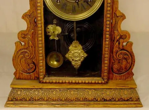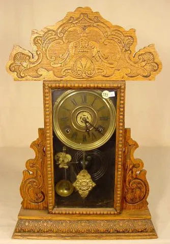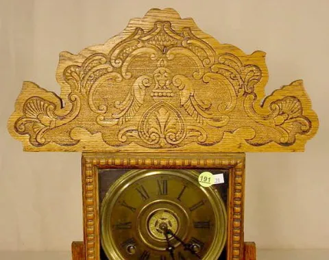Sessions pressed oak shelf clock with alarm.