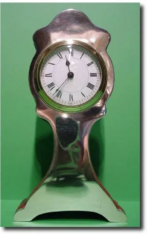 English red leather and silver fronted timepiece mantel clock, circa1904