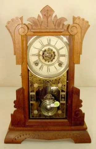 Waterbury walnut shelf clock with alarm: