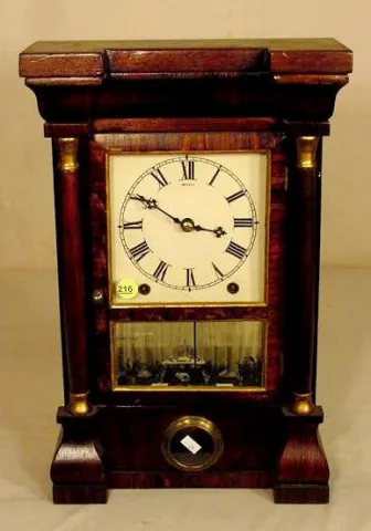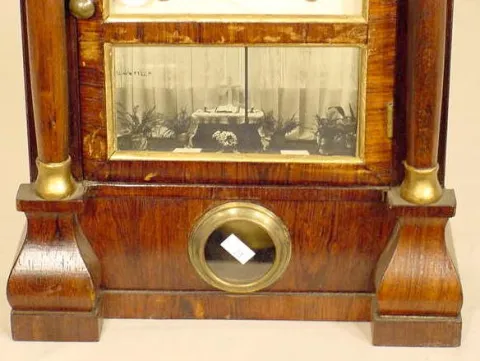 (Refinished rosewood case; repainted gilding; new dial & hands; picture behind bottom glass; top replaced; some veneer losses.) Running at the time o...
