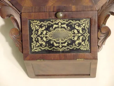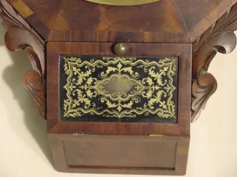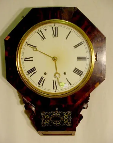 flame mahogany veneer & carved side pieces. (Dial recovered; minor losses to lower glass & case veneer.) Running at the time of listing, not guarantee...