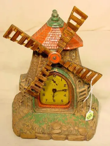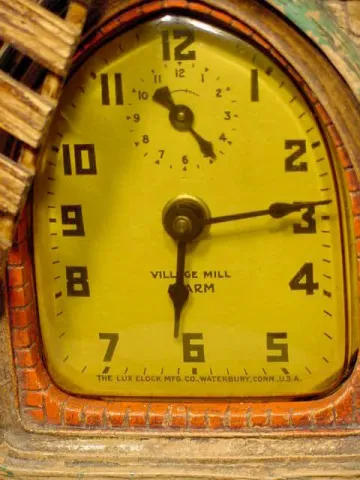 Lux Village Mill alarm clock: last Pat. 1920; Deluxe Art Clocks;