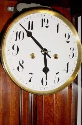 C.1880, Ithaca Calendar Clock Co., New York, No. 8, Shelf Library, perpetual double dial calendar in a walnut case.