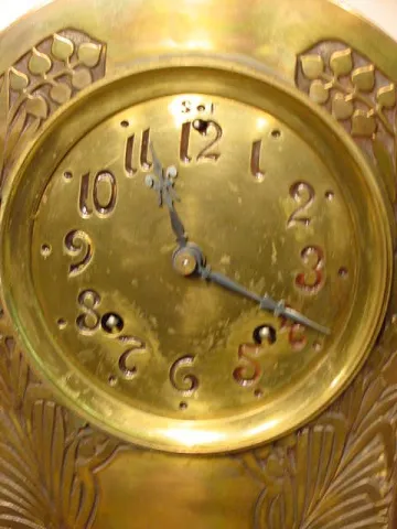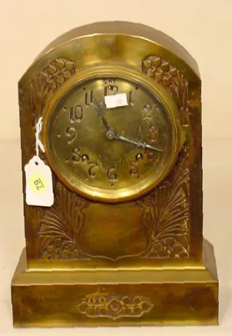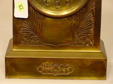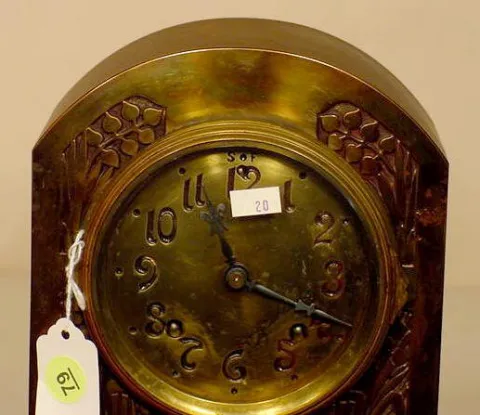 with painted tin dial with brass surround stamped at edge Pat. July 5 1870 with Roman on chapter ring, outer minute ring marked with ticks, every 5 m...