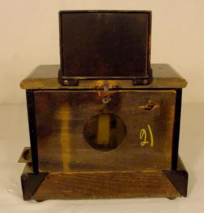 printed paper over tin dial, Roman on chapter ring, outer minute ring marked with ticks, every 5 minutes bold, lower calendar dial with circular cut-...