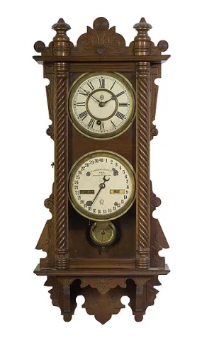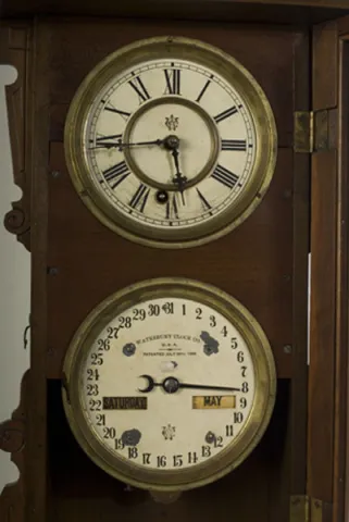 Waterbury Clock Co. Unusually Small Double Dial Calendar Clock,