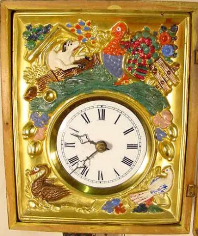 includes one from New Haven in gold painted cast white metal with angel, with enameled dial having Arabic numerals, 8-day spring driven brass movemen...