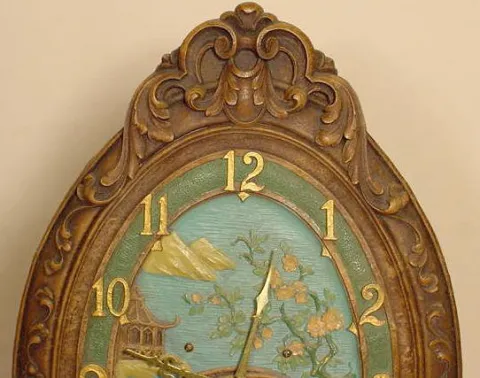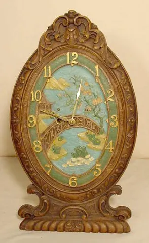 include a labeled The Terry Clock Company mahogany clock with painted tin dial with Roman on chapter ring, tick on outer minute ring with bold every ...