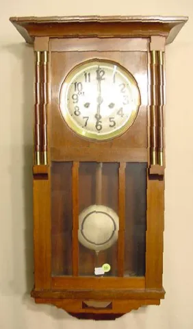 painted and gilt wooden dial with Arabic on chapter ring, outer minute ring marked with ticks, bold every 5 minutes, spandrels and center with raised...