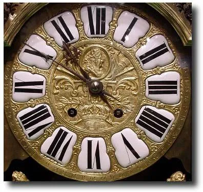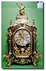 A late 19th century large sized French brown tortoiseshell boulle clock, the case with waisted pediment surmounted by a seated female figure, with female term figures to the sides sitting on dragon feet, the cast dial applied with individual white enamel Roman cartouche chapters, with enamel signature plaque between two female relief figures below Balthazar Paris, the 14-day French square plate movement with hour and half hour strike on a large gong contained within the base of the clock, the condition of this clock is very good and the boulle inlay to the side is of very high quality 35" x 20" x 14" 2900 An unusually large sized French 17" high corniche cased brass fourglass clock with red jewelled front visible brocourt escapement and a large mercury pendulum, the large polished brass