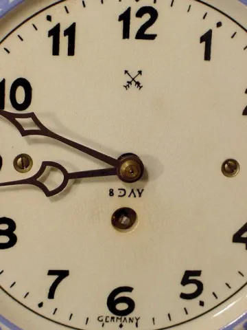 painted and gilt wooden dial with Arabic on chapter ring, outer minute ring marked with ticks, bold every 5 minutes, spandrels with raised gilt scrol...
