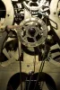 painted tin dial with slightly domed chapter ring with Arabic, outer minute ring marked with dots, every 5 minutes bold, 8-day time, strike and alarm...