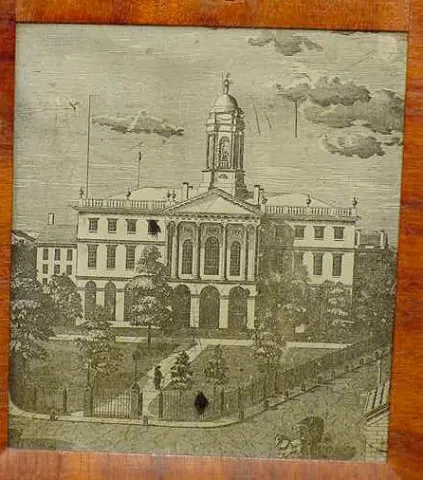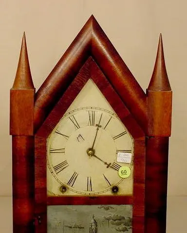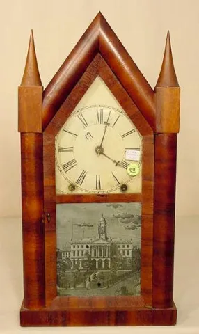 Henry Terry & Co. Wooden Works Stenciled Half Column Clock with Alarm,