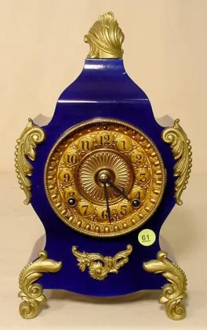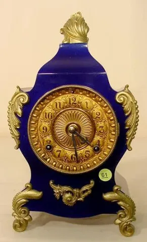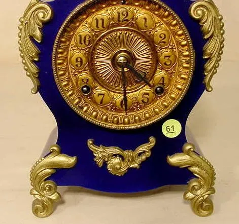painted and gilt wooden dial with Arabic on chapter ring, outer minute ring marked with ticks, bold every 5 minutes, spandrels with raised gilt scrol...