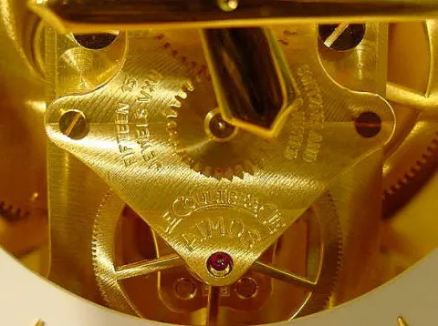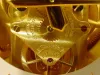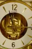 polychrome and gilt painted wooden dial with Arabic on chapter ring, outer minute ring marked with ticks, every 5 minutes bold, center with garter of...