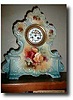 French china cased shelf clock, S. Marti, Paris, c. 1890 Porcelain case, eight day brass movement, porcelain dial; 17 1/2" tall by 16" wide. Condition: Overall excellent. There is a small "shim" epoxied onto the underside of the rear of the base to even the stance of the clock. This is invisible unless the clock is picked up and turned over. So, we list the clock as EXCELLENT. Additional Dealer Comments: This larger-than-usual porcelain mantle clock has been carefully gone over in our clock shop by a Master Clockmaker to assure perfect running condition. The case is free from cracks, chips and crazing.