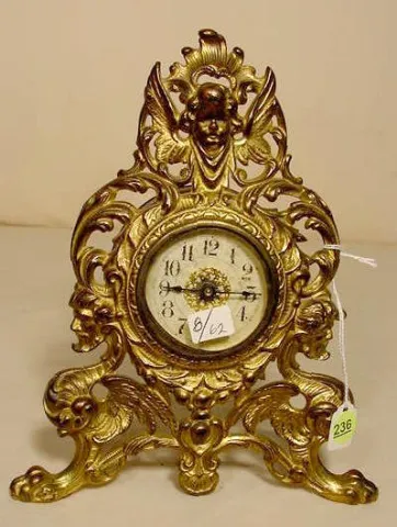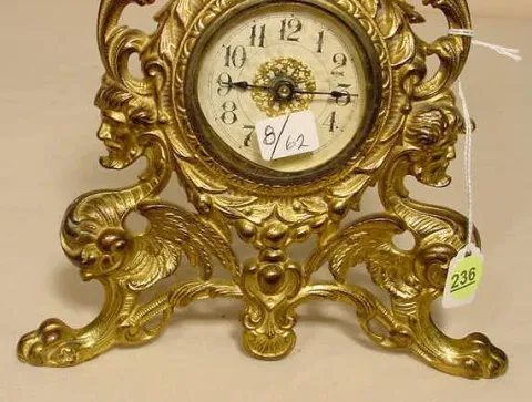 painted tin dial, Roman on chapter ring, outer minute ring marked with ticks, every 5 minutes bold, unmarked 8-day time-only weight driven movement w...