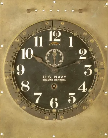WWII U.S. Navy "Zig-Zag" Control Clock, circa 1940s and made by the Seth Thomas Clock Co. for the U.S. Navy.