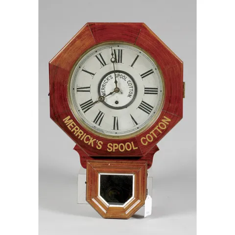 with original New Haven printed label on rear, white dial with Roman numerals and Merrick's Spool Cotton, door with Merrick's Spool Cotton in new gol...