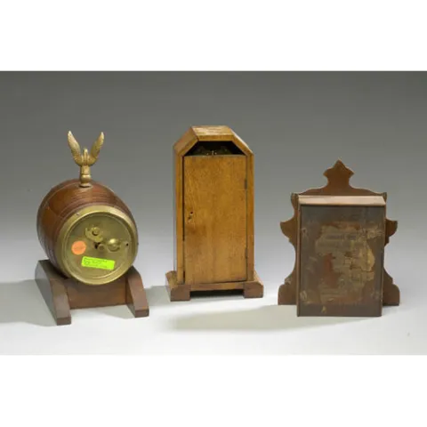 Three Ornate Wood & Brass Novelty Clocks,