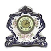 8-day brass time and strike movement, stamped The Gilbert Clock Co. Enamel dial, Arabic numerals and cast brass bezel. Polychrome-painted floral-deco...