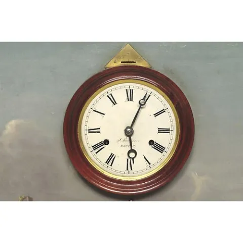 Dayton Ohio Picture Frame Clock, 8-day time and strike, wagon spring-driven, brass movement, believed to be No. 35, painted tin dial, Roman numerals ...